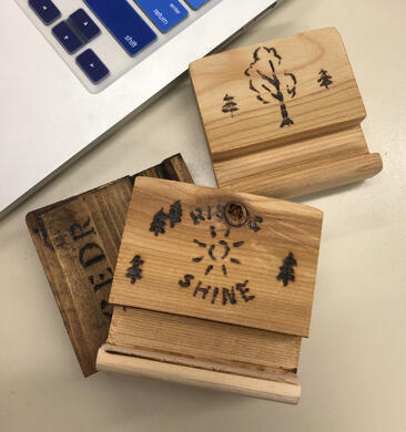 We are cedr co, a Junior Achievement company of twenty-eight high school students and four mentors driven to improve work flow through ethically-sourced wooden phone stands. Everything is handmade - we cut, sand, stain and engrave each stand one by one. Throughout these sixteen weeks, our goal is to create a successful product and learn more about the ins and outs of running a company.